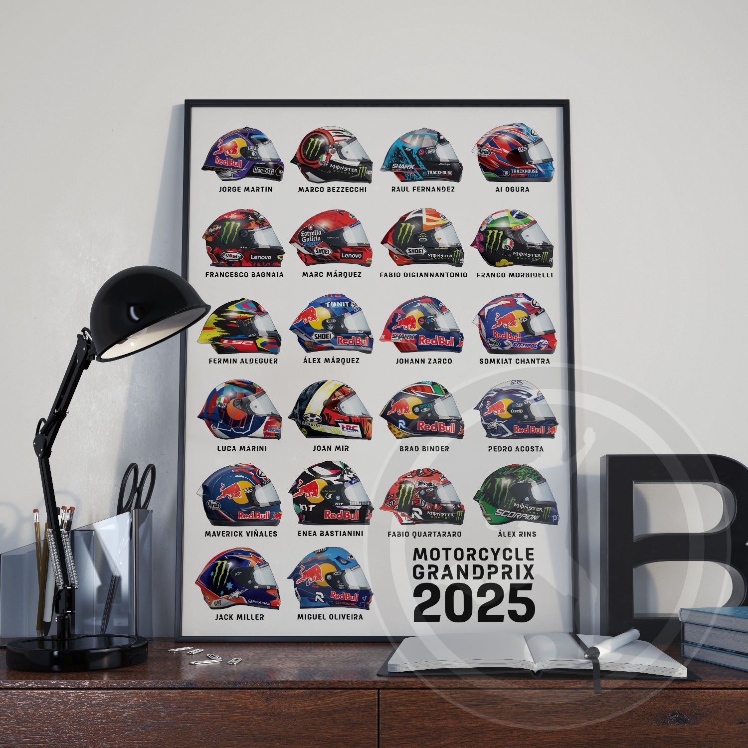 Introducing our stunning 2025 MotoGP Helmet Poster, the ultimate gift for any MotoGP fan!