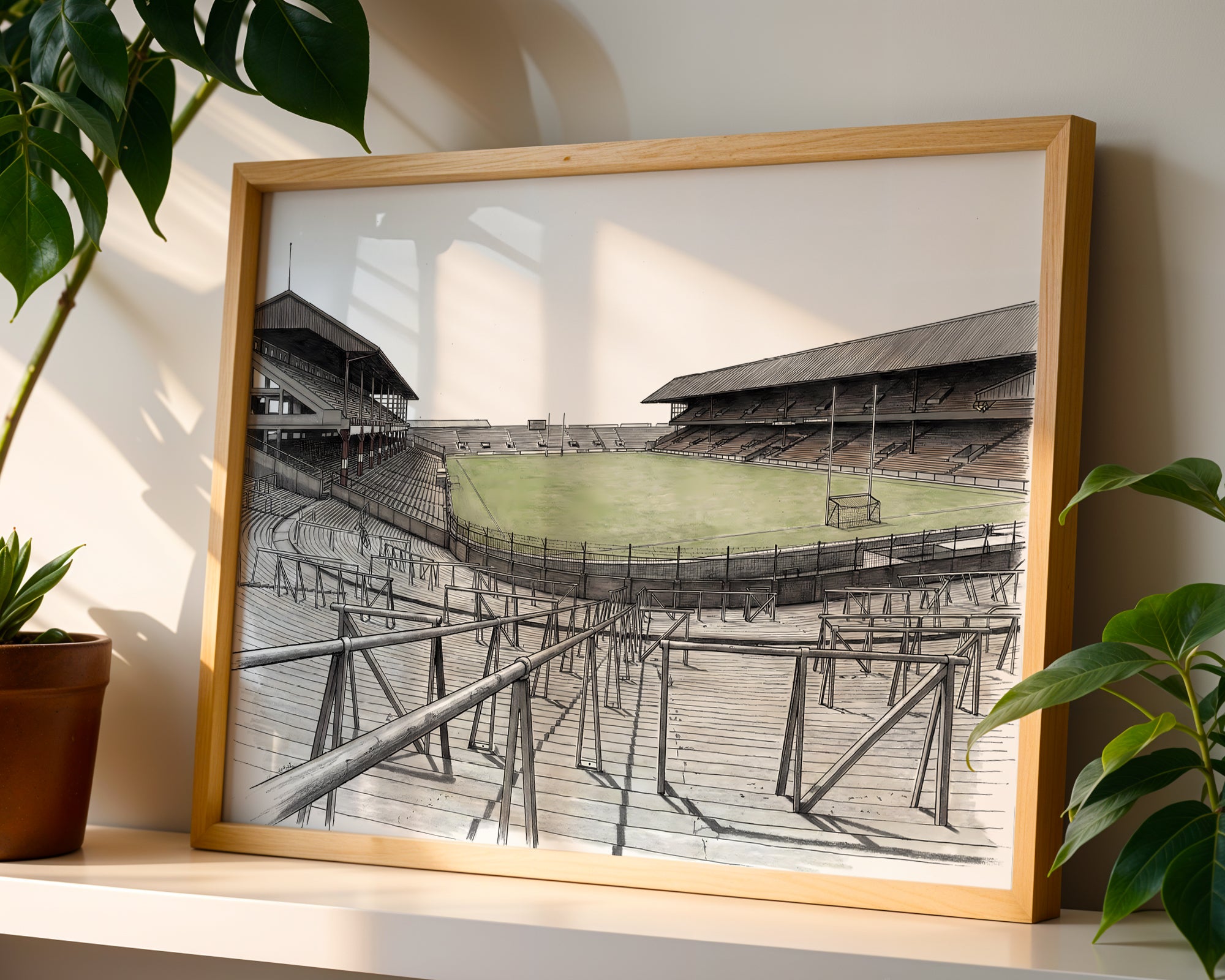 Printed on premium 200gsm matte museum-quality paper, this piece blends vintage engineering aesthetics with modern design — perfect for football fans, stadium collectors, GAA supporters, or lovers of unique architectural art.