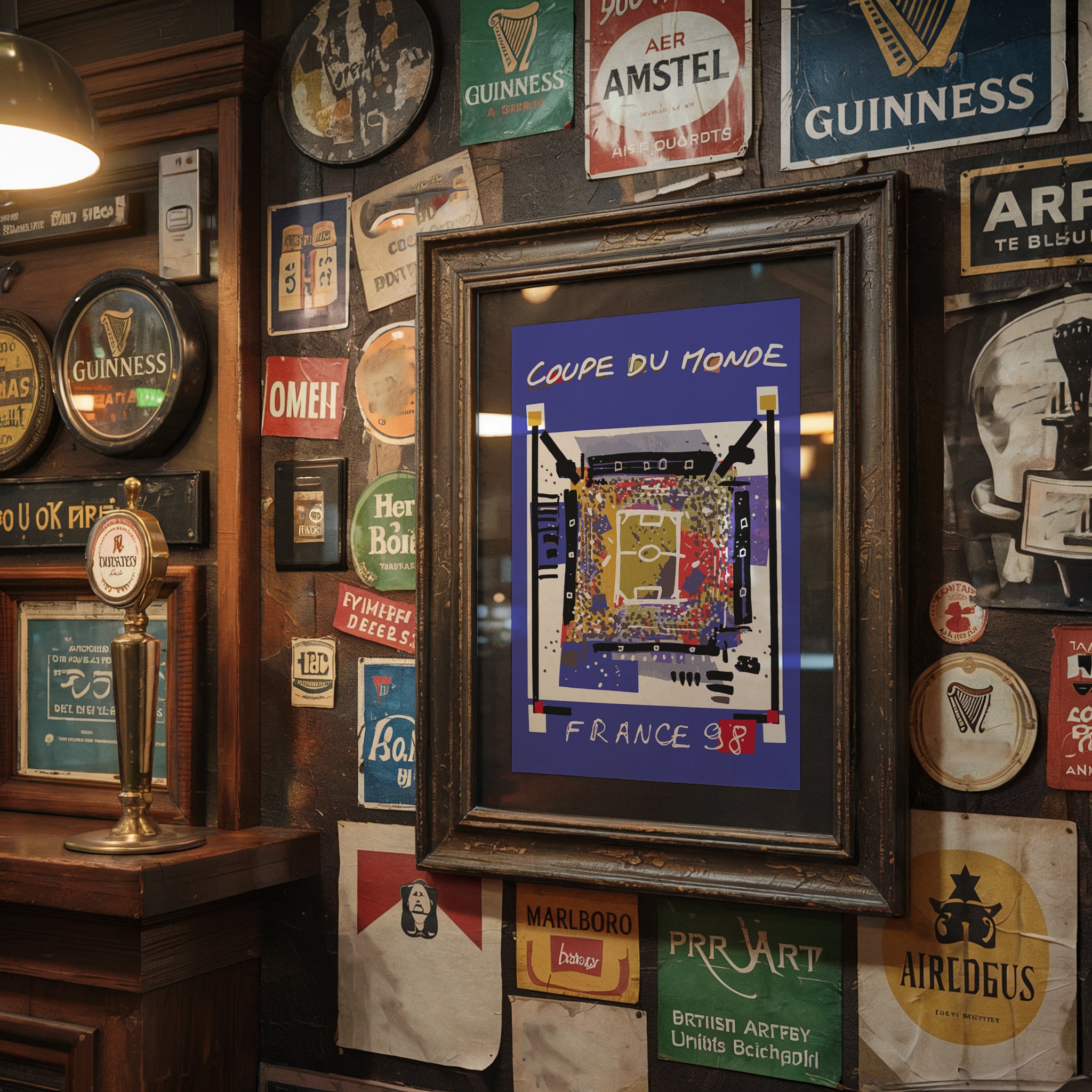 Originally designed to promote the historic soccer/football tournament, this poster captures the excitement and energy of the event. With bold colors and striking typography, it's a true masterpiece of design.
